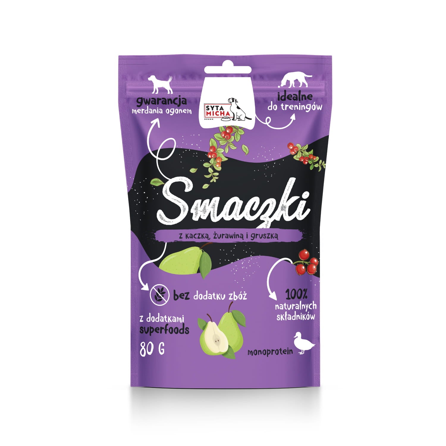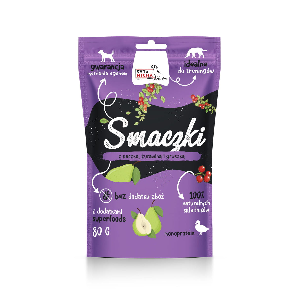 Smaczki dla psa z kaczką, żurawiną i gruszką 80g