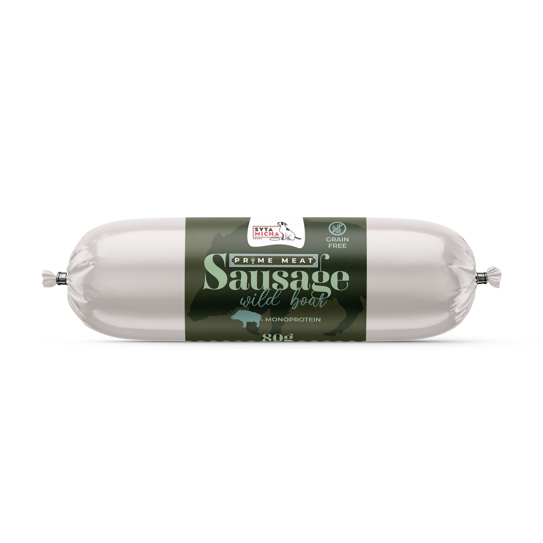 Syta Micha presenta la nuova linea Prime Meat – eccezionali salsicce monoproteiche per cani che sono deliziosi snack per l'addestramento. La salsiccia Prime Meat con cinghiale da 80g è una combinazione di 97% carne muscolare di cinghiale e 3% tapioca senza glutine. Un'ottima proposta di snack per l'addestramento per cani con un sistema digestivo delicato o che seguono una dieta di eliminazione.